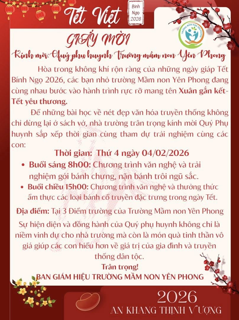 Công tác chuẩn bị Hội Xuân Bính Ngọ 2026 của cô và trò Trường mầm non Yên Phong